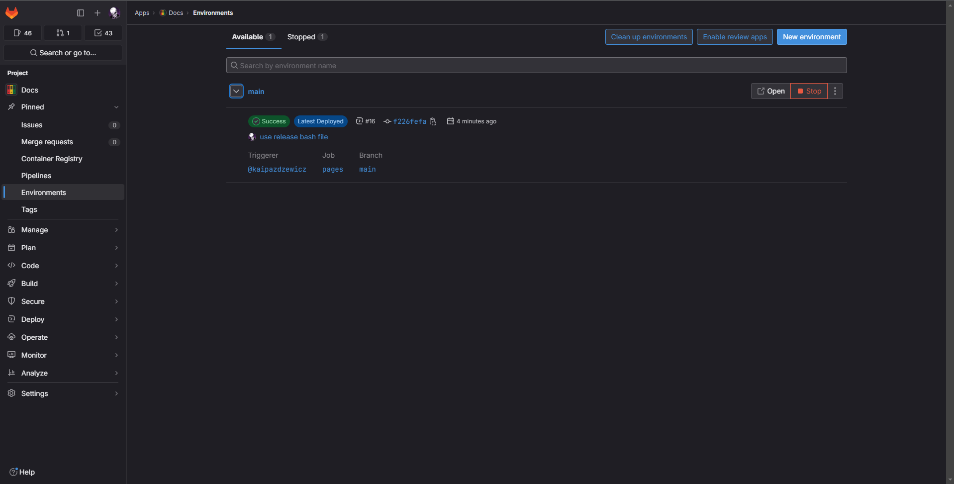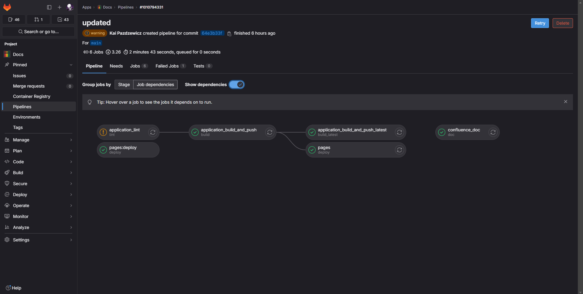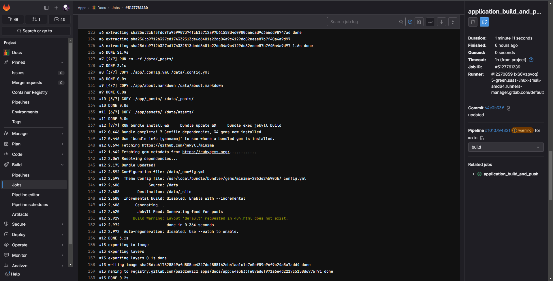 In der Gitlab CI/CD Konfigurationsdatei werden wir nun den Docker Build Vorgang definieren und das Deployment zu Gitlab Pages